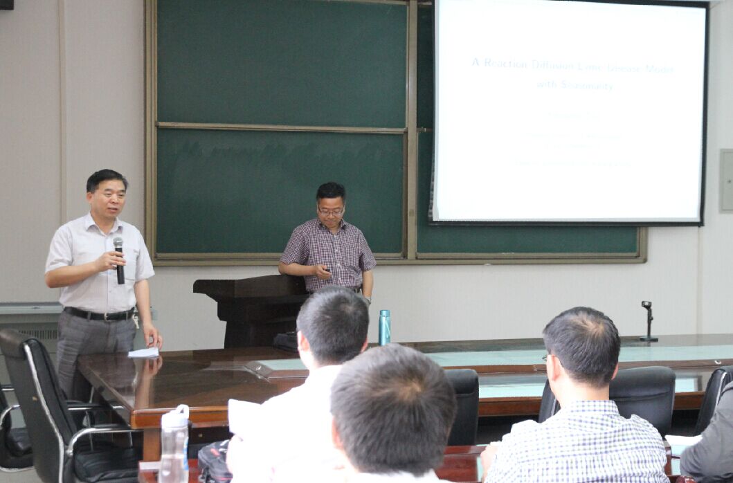讲座中,赵教授向大家分享了他近期一个关于Lyme 疾病的研究。首先介绍了Lyme 疾病的发现背景,然后针对疾病的传播规律建立了一个反应扩散的数学模型。在有界区域上,分析了模型的阈值动力学;在无界区域上,确立了疾病的传播速度,并表明该速度也是周期行波解存在的最小波速。最后,将模型应用到一个具体的案例,较好地验证了理论结果。
