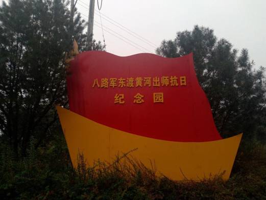 参观完展厅之后,大家一同来到了八路军东渡黄河纪念碑。这座纪念碑建于近傍黄河渡口的凤凰台上,它的上部是由三片高大的竖向风帆组成,象征当年东征的三支主力军,下部由八个船型基座组成,寓意坚不可摧的八路军和艰苦卓越的八年抗战之意。飘动的曲面党旗将三个风帆联结一起,寓意这三支主力部队由党统一指挥。大家在纪念碑前,缅怀爱国将士,并合影留念。