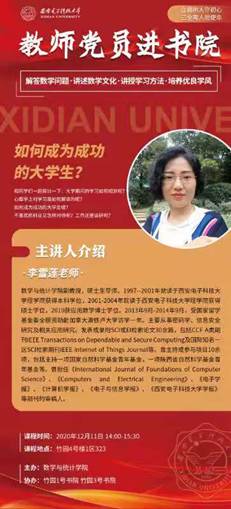 BB贝博艾弗森“教师党员进书院”系列活动已成功举办六期,前几期都是关于高数的内容,包括学习的方法以及课本课程内容的讲解。为继续弘扬教师党员们“立德树人”的精神,发挥党员的榜样作用以及真正地帮助同学们,“教师党员进书院”系列活动第七期于2020年12月11日正式开始。