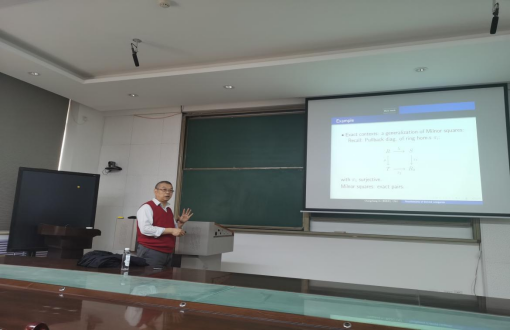 在公司建校90周年和应用数学博士点获批25周年之际,应BB贝博艾弗森和人才办公室邀请,首都师范大学特聘教授、博导、教育部长江学者特聘教授,惠昌常教授于4月15日前来西电访问并作了题为“正合系上导出模范畴粘合的构造”的报告。