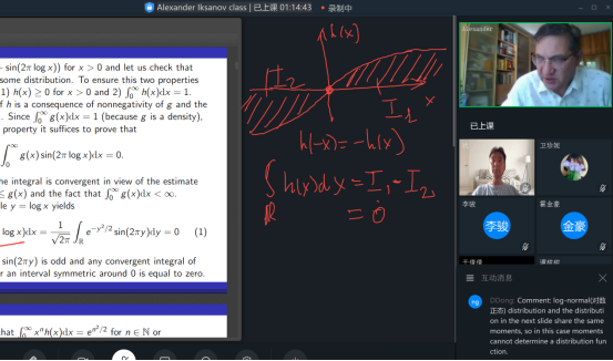 7月13日~27日,Alexander Marynych教授的课程《Advanced Probability Theory》(高等概率论)如期跟师生见面,短短16学时的课程受到了两位助教老师和26名员工的欢迎。这是一门非常抽象但又极其重要的概率课程,为给员工更多直观,Marynych教授每次课上都用专业板书软件画图,并把证明的细节详细地写下来,课下会把上课录像、笔记等及时分享给员工,而对于员工的提问他都是有问必答并反复强调以免理解错误。