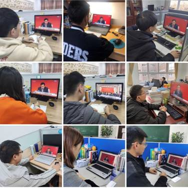 (通讯员:陈谌)党的十九届六中全会于11月8日至11日在京召开,深入学习宣传贯彻党的十九届六中全会精神是一项重大政治任务。身在各处的数统院师生于11月12日上午10时锁定同一频道通过线上与线下相结合的形式集体收看新闻发布会直播。此次学习活动共设两个线下会场,分别在信远206报告厅和220西会议室。信远206与会人员有公司领导、两委委员、系主任、全体党支部支委会成员以及部分员工代表共30余人,本科生党支部全体党员在220西会议室集体学习。教工党支部以及硕士和博士党支部同志线上自行观看。