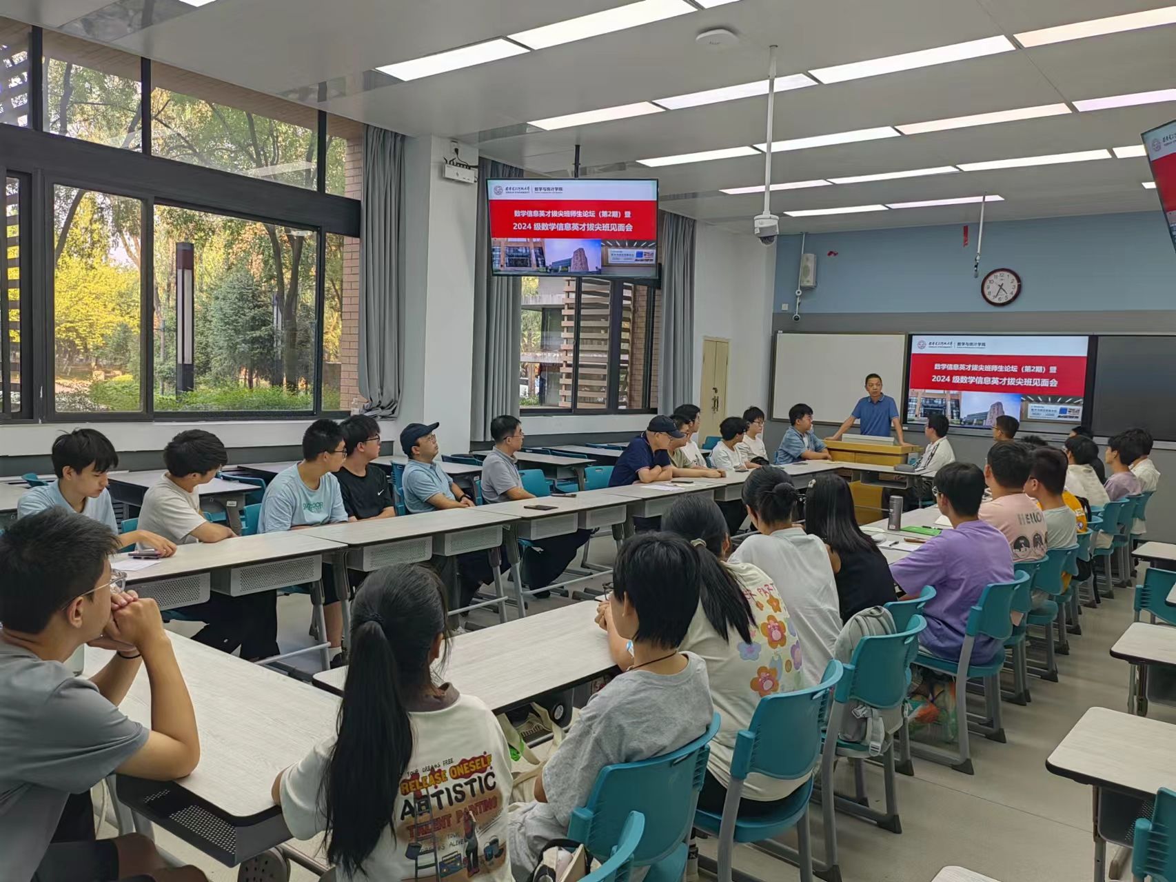 此次新生见面会不仅增强了2024级拔尖班员工学习数学的信心,也让他们对未来的学习和科研训练实践之路有了更加明确的理解,对于自己的梦想和期待更加坚定不移。数学信息英才拔尖班的同学们必将踔厉奋发、勇毅前行、不负韶华,在不懈奋斗的道路上取得辉煌的成绩。
