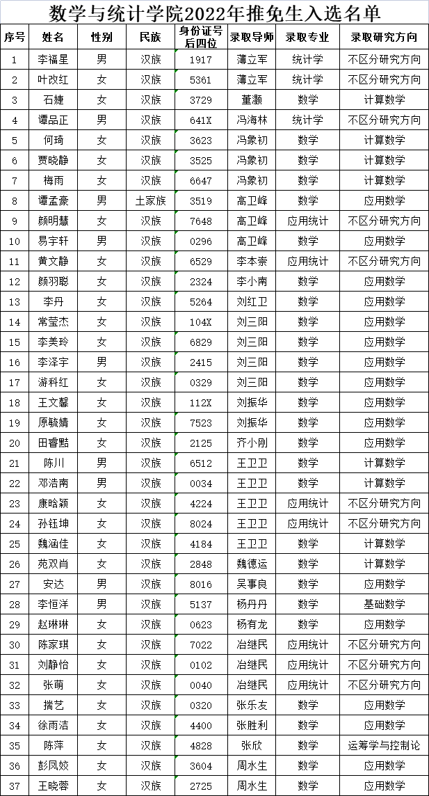 根据有关规定,现对2022年推荐免试研究生拟录取名单予以公示,公示期10个工作日。公示期内,如有问题请向公司反映,联系电话:029-81891379。