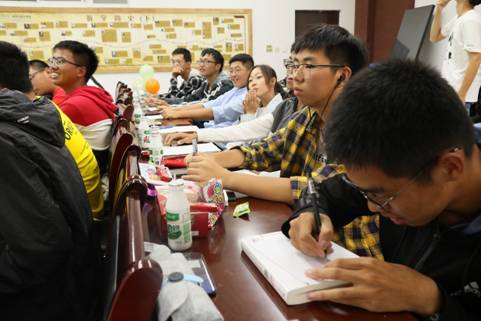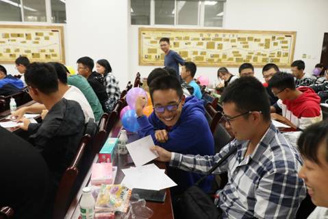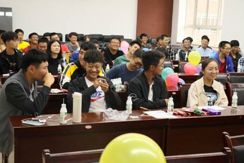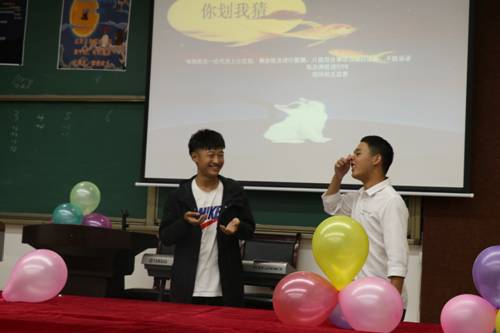 第二个环节——你画我猜。各组同学坐成了一排,从第一个同学开始,以图画的形式传递一个词语。有些同学因为猜不出答案而抓耳挠腮,有些同学将丰富的想象和奇思妙想的跃然纸上,各个“门派”大师们的画作,将活动气氛带到高潮,引得全场同学捧腹大笑。在欢声笑语中,不知不觉地拉近了彼此间的距离。
