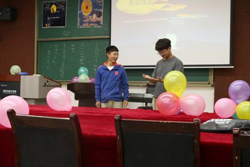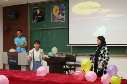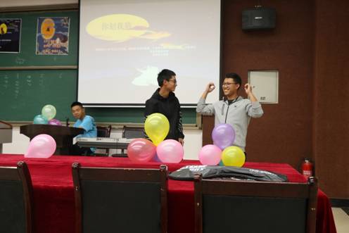 第一个游戏——成语接龙。在主持人的组织下,各小组充分发挥自己的聪明才智,开动脑筋,接出了一个又一个成语,紧张、刺激的活动中同学们放松了心情,渐渐地融入其中。游戏结束后,来自数学与应用数学系地何家麟同学,自弹自唱,为大家带来了一首周杰伦的《安静》,在优美的歌声中,静待下一个环节的开始。