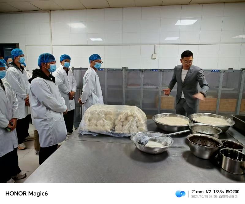 上午7:30,公司组织同学们前往中心厨房参观。这座厨房是南北校区提供米饭、馒头、面条等主食成品的重要加工场所。同学们深入实地穿着工作服装,经过风淋消毒进入加工区域,亲眼见证一个个馒头的制作出炉,以及大米从挑选、清洗、加工到最终烹饪的整个过程。参观过程中,大家还深入了解了烹饪时厨具的清洗维护等细节工作,亲身体验了现代化流水线作业和自动化技术带给食品加工的高效和便捷。