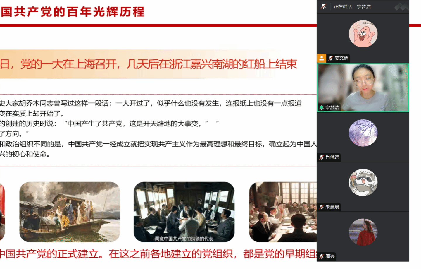 BB贝博艾弗森“时代之声”宣讲团成员宗梦洁以“学好百年党史,凝聚奋进力量”展开宣讲。她从为什么旧中国选择了中国共产党、中国共产党的革命艰辛的不易、中国共产党的成立带给中国的意义以及新时代中国共产党的历程这些方面展开宣讲。她讲到,作为新时代青年应该以党史为镜洗涤心灵尘埃,从百年征程中汲取奋进力量。既要在历史回望中重温初心、叩问初心,将红色基因融入血脉,以时代之问校准行动坐标,方能在时代答卷上写下无愧于党和人民的青春注脚,续写中华民族伟大复兴的崭新篇章。