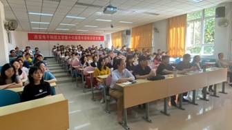 研究生会组织部部长李绍轩进行纳新宣讲,他从各部门的基本职责到研会举办活动的纵览对研会具体工作进行了详细的介绍,同学们也有了基本的认识。学习部部长李俭、文体部副部长李开鹏、宣传部副部长王晓瑜依次上台介绍,欢迎新同学们踊跃加入研会,锻炼沟通能力,收获友谊与技能。