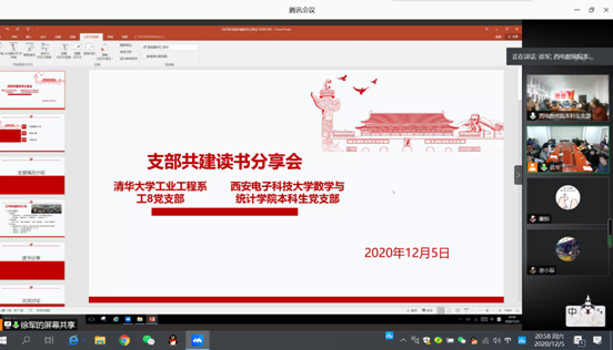 (通讯员:李泽宇)为搭建基层党支部交流平台,加强基层党支部建设,增强员工党支部的凝聚力和战斗力,2020年12月5日21时,公司党支部与清华大学工业工程系工8党支部通过腾讯视频会议的方式共同举办读书分享会活动。此次活动旨在加强支部建设,推进“两学一做”学习教育常态化制度化,落实意识形态工作责任制。第一次共建活动由清华大学工业工程系工8党支部书记徐军书记主持,清华大学工业工程系工8党支部全体党员、公司党支部全体党员及发展对象参加。