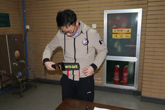 8:30不到,已经有大半同学来到考场外,他们将书包放置在指定位置,在考场记录表上庄严签字,并在《数学与统计公司党员诚信考试承诺书》上郑重签上自己的名字,随后使用金属探测仪自检后进入考场,他们的眼神是坚毅坚定的,神态是自信满满的,连他们的步伐给人的感觉都是轻盈质感的。