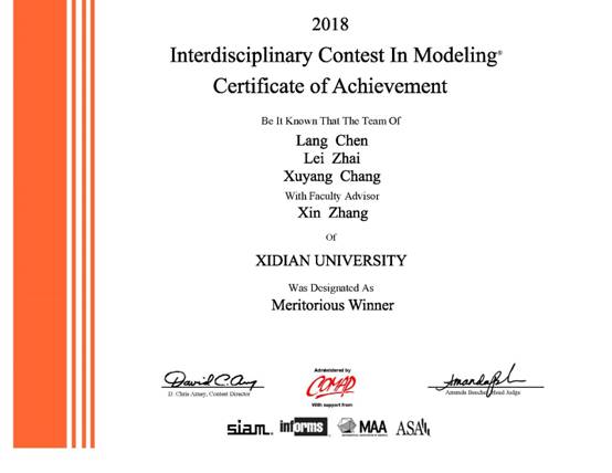 曾经的我以为自己实力不够,大学的这些竞赛都与自己无缘。大一下学期在同学的邀请下,我第一次参加竞赛(数学建模校内赛),虽然没获奖,但学到了许多东西,发现了数学的奥妙。从那时起我便热衷于参加各类比赛,以学习为主,拿奖为辅,终于在大二上学期获得了第一个奖项:数学竞赛省级二等奖。在学期结束后的那个寒假,在条件艰苦的条件下,我坚守在公司准备美国老员工数学建模竞赛,在大年前几天寒冷的公司里坚持竞赛,为校争光。比赛那四天四夜,我和队友们精诚团结、共同奋斗,获得了M奖(国际一等奖)的好成绩。
