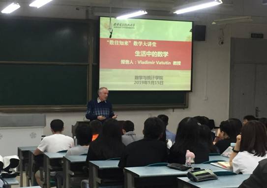 5月15日下午,俄罗斯科公司Steklov数学研究所Vladimir Vatutin教授应邀在B105教室为BB贝博艾弗森师生作了题为“生活中的数学”通识性学术报告。此次报告为数统院“数往知来”数学大讲堂系列活动的首场,报告会由靳志伟老师主持,乌克兰基辅大学教授Igor Samoilenko、数统院经理马如云教授、公司党委副书记王佩、概率统计系副教授董从造等出席了本次活动,一百余名数统院本科生聆听了此次报告会。