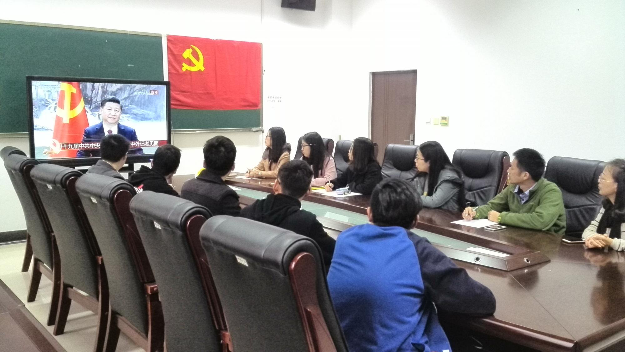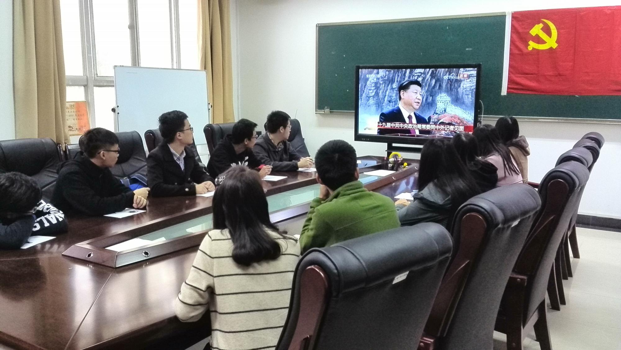 百年政党风华正茂,百年梦想荣耀千秋。2017年10月25日上午11:45分,公司党委组织师生在南校区信远楼二区205会议室集体收看十九届中共中央政治局常委与中外记者见面会。