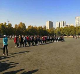 女子绑腿同行 30人×60米穿梭接力