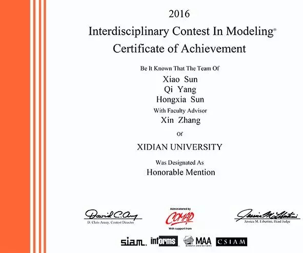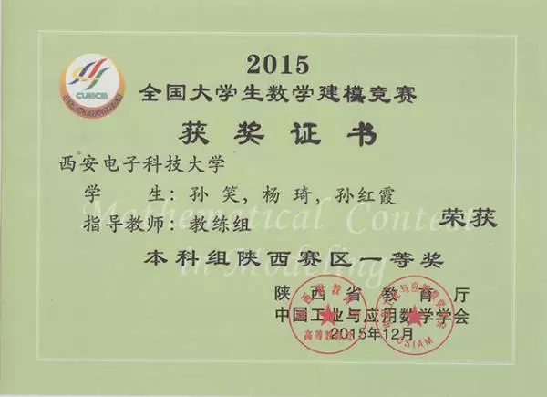 2015年10月,获得高教社杯数模竞赛陕西省一等奖