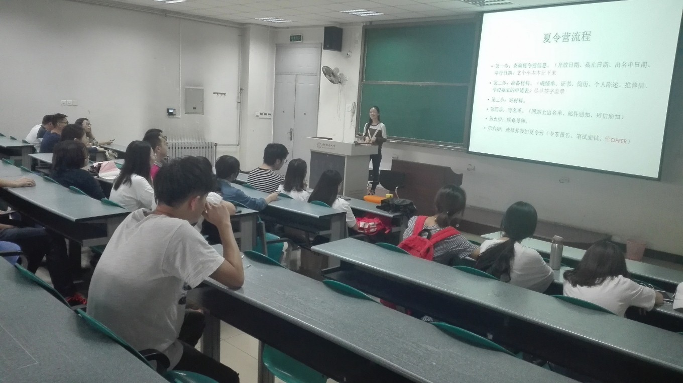 热心的2014级学长学姐根据他们的亲身经历就保研的流程、各个流程中应该注意的问题、申请的专业包括专业的排名和专业的研究情况以及申请的难易程度等方面给大家一一做了介绍交流,同学们也对自己的困惑向前辈提出疑问,6位“经验导师”就相关问题也是知无不言。