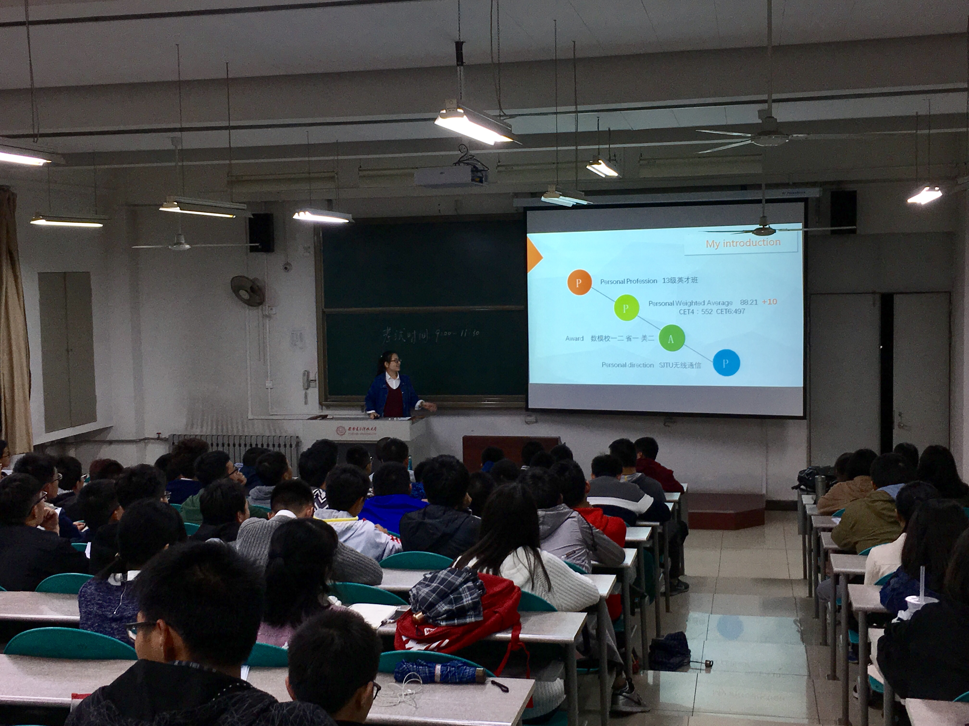 2016年10月26日晚6:00,为了让数统院大一新生了解老员工活,认识提升个人能力的重要性,由靳志伟老师组织的学长学姐学习交流会在B316举行。2013级成绩优异成功保研的学长学姐向数统院全体大一新生介绍了经验。