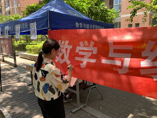 25日上午9点,党支部的大三党员就已经开始了准备工作,一部分人开始编写捐赠流程,以便于捐赠过程的快速有序进行,还有一部分党员撰写感谢信,表达对捐赠者的感谢与敬意,其他的人开始布置现场,包括搭帐篷,张贴横幅等等。上午11点,烈日炎炎,当时现场气温很高,但现场的每一位党员都在认真踏实的做好自己的工作,毫无怨言,时时刻刻展现出身为党员同志的先锋模范作用。