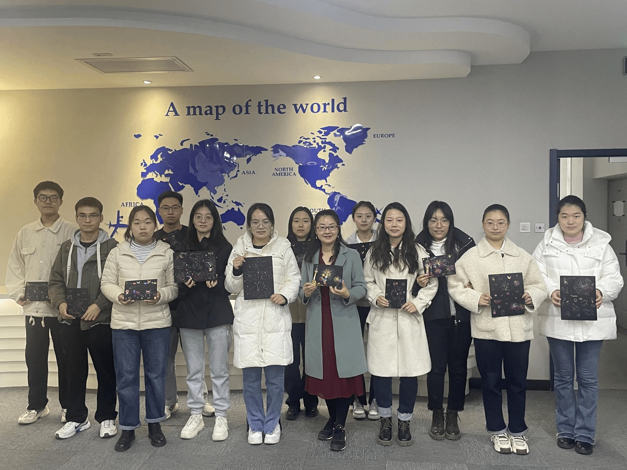 游戏环节:丁老师分发了刮刮画给每位同学,不限制题材和内容,让他们自由发挥完成作品。这一举措让同学们得以在无限的想象空间里挥洒创意,有的可能选择描绘梦幻般的奇幻世界,有的或许表现出生活中的情感和故事,而另一些人可能尝试着用抽象的形式表达内心的思绪。完成后,同学们可以为自己的作品取一个名字。