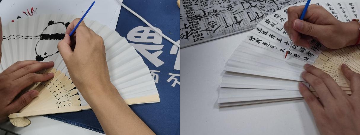 活动开始后,每位参与者挑选了自己心仪的扇子和喜欢的颜色,开始了他们的创作之旅。他们或是在描绘山水花鸟,或是书写诗句,展现出各自独特的风格。随着时间的推移,原本空白的扇面逐渐变得生动起来,每一幅作品都是独一无二的艺术品。参与者们在绘画过程中相互交流心得,分享技巧,笑声和赞叹声此起彼伏,整个场面洋溢着和谐与喜悦。